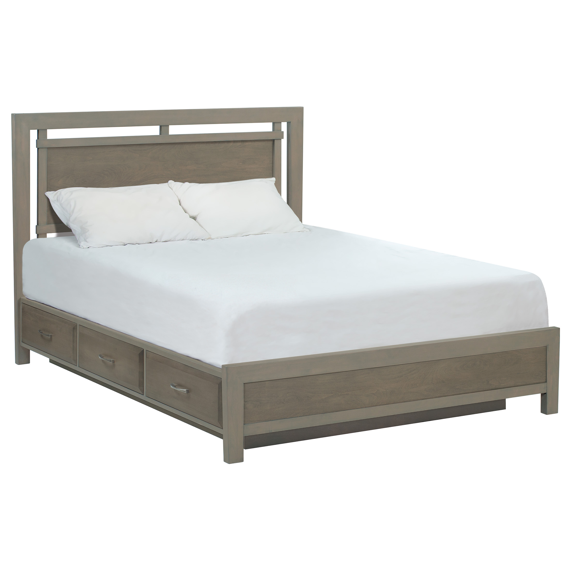 A perfect fusion of contemporary grace and urban elegance. Featuring subtle contrasting shades of Astoria Sky gray stain and antique pewter drawer pulls